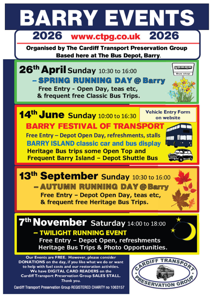 The CTPG is a charity created in 1992, we have leased an ex-Western Welsh Depot in Barry since 2008 to store our collection of buses and associated memorabilia, we organise two vehicle rallies each year and hold monthly meetings on the third Wednesday of each month at Bedwas workingmen’s hall. Members receive a quarterly newsletter and if they wish, restore the group’s buses, ride them and travel on them to rallies. Our aim is to preserve representative examples of the buses that ran in South East Wales and the Valleys as well as memorabilia and records of the companies they ran for.